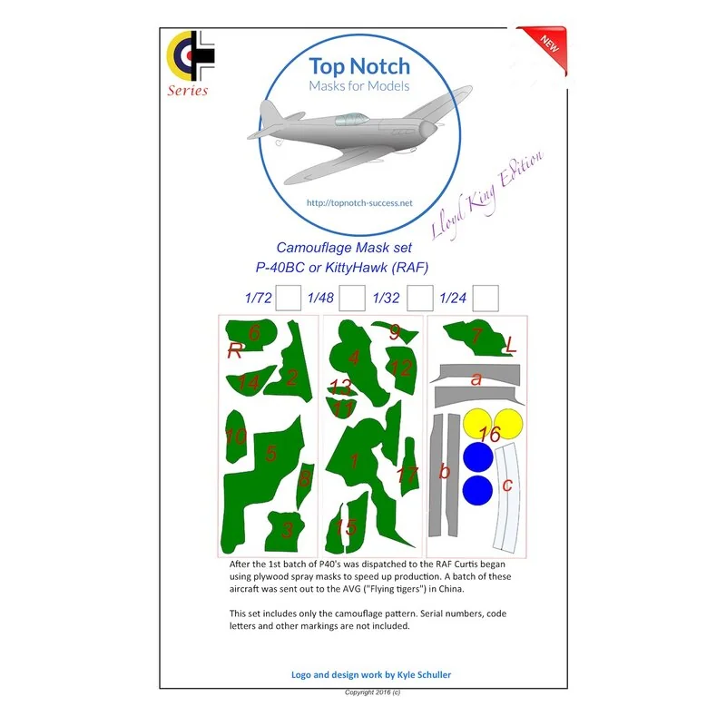 Curtiss P-40B / P-40C Kittyhawk patroon van de camouflage verf Mask