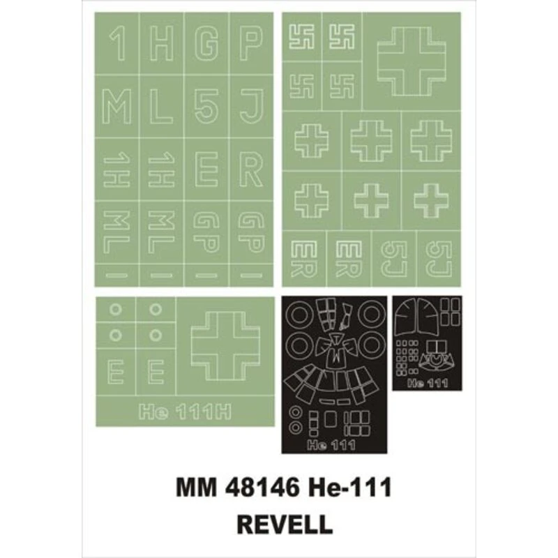 Heinkel He 111 1 canopy masks (exterior) + 3 insignia masks (designed to Be Farming with Revell kits)