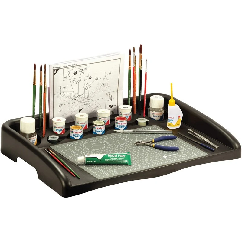 Het Humbrol-werkstation is vervaardigd van een sterk en duurzaam materiaal dat niet door Humbrol Poly Cement kan worden gesmolten.