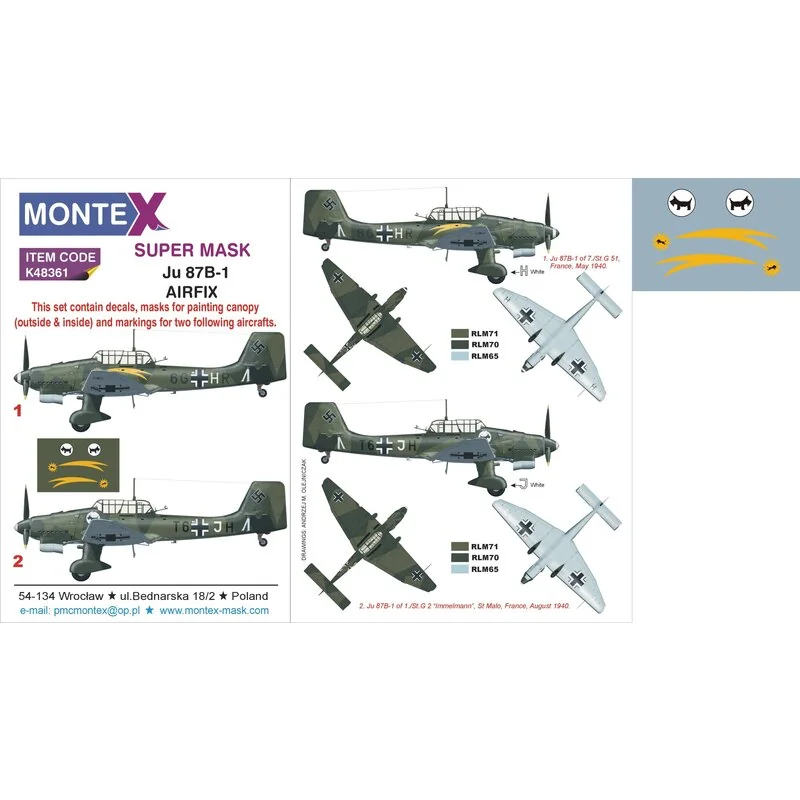 Junkers Ju-87B-1 ‘Stuka’ 2 luifelmasker (buiten & binnenkant) + 1 insignes maskers + stickers (ontworpen om te worden gebruikt met Airfix-sets)