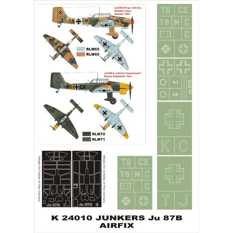 Junkers Ju 87B 2 canopy mask (exterior and interior) + 5 insignia masks (designed to Be Farming with Airfix kits)