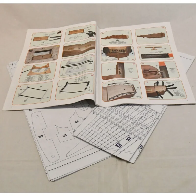 De karveel van Christoffel Columbus, onderdeel van de expeditie om de Nieuwe Wereld te ontdekken. Volledig houten constructie door paren en latten, lasergesneden onderdelen. Compleet beslag in de doos inclusief messing gedraaide tonnen en spinnakers, buxusblokken, ankers, tuigage draad, te monteren lantaarn, messing decoratie, banieren, boten.