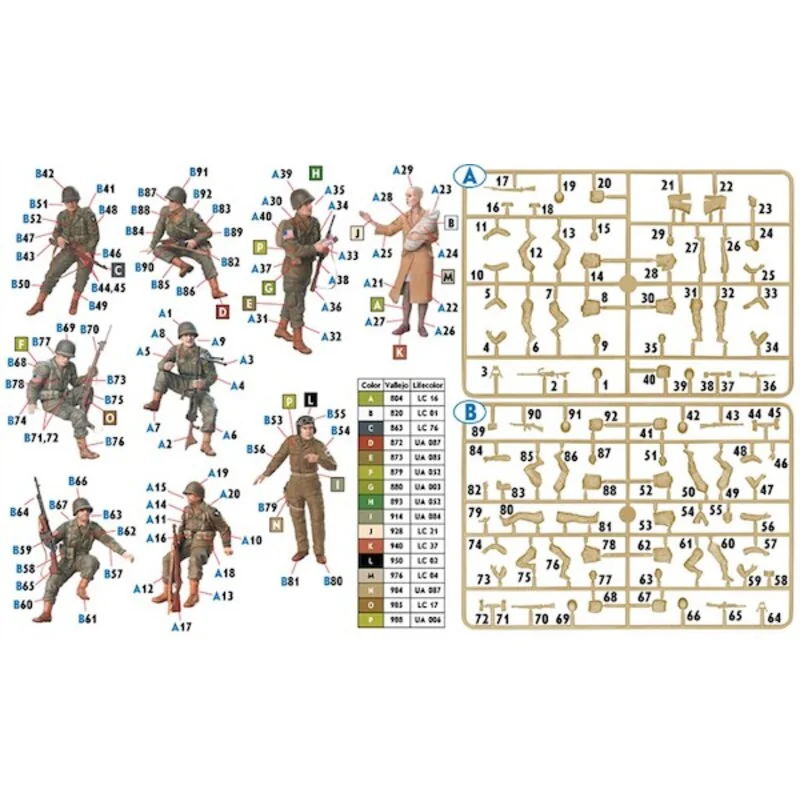 7 x US Paratroopers, 1 x British Tankman and 1 x civilian woman carrying a baby